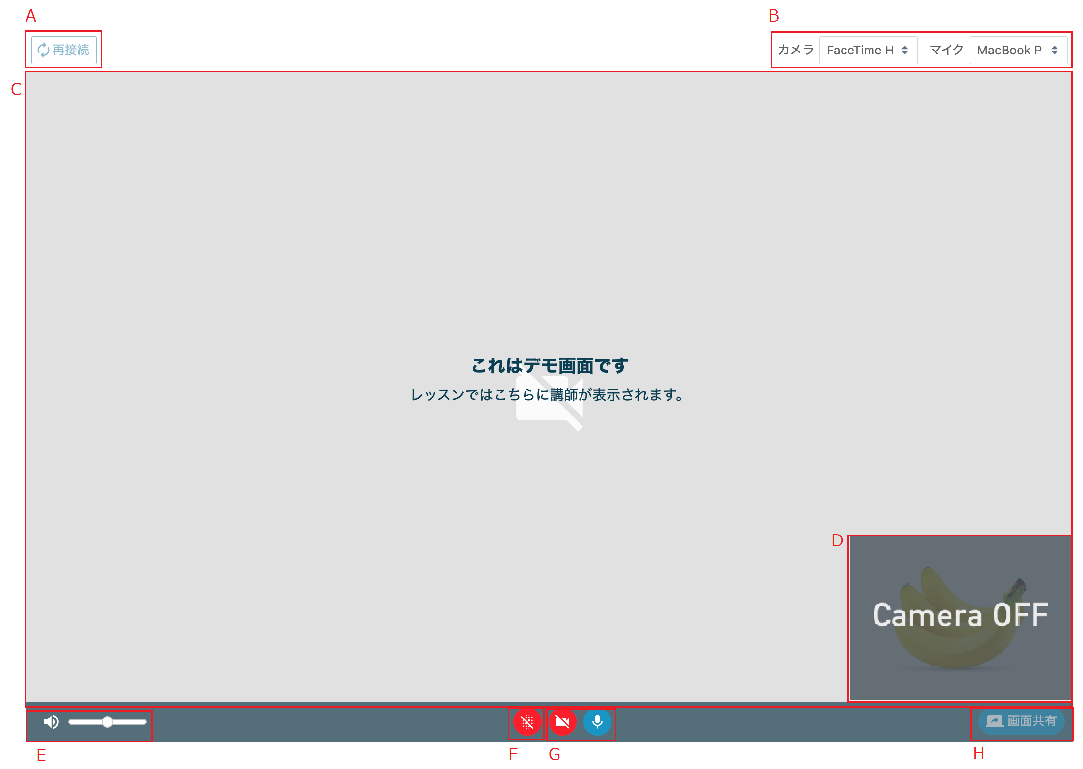 講師が入室しており、カメラをONにしている場合は、講師の映像が表示されます。